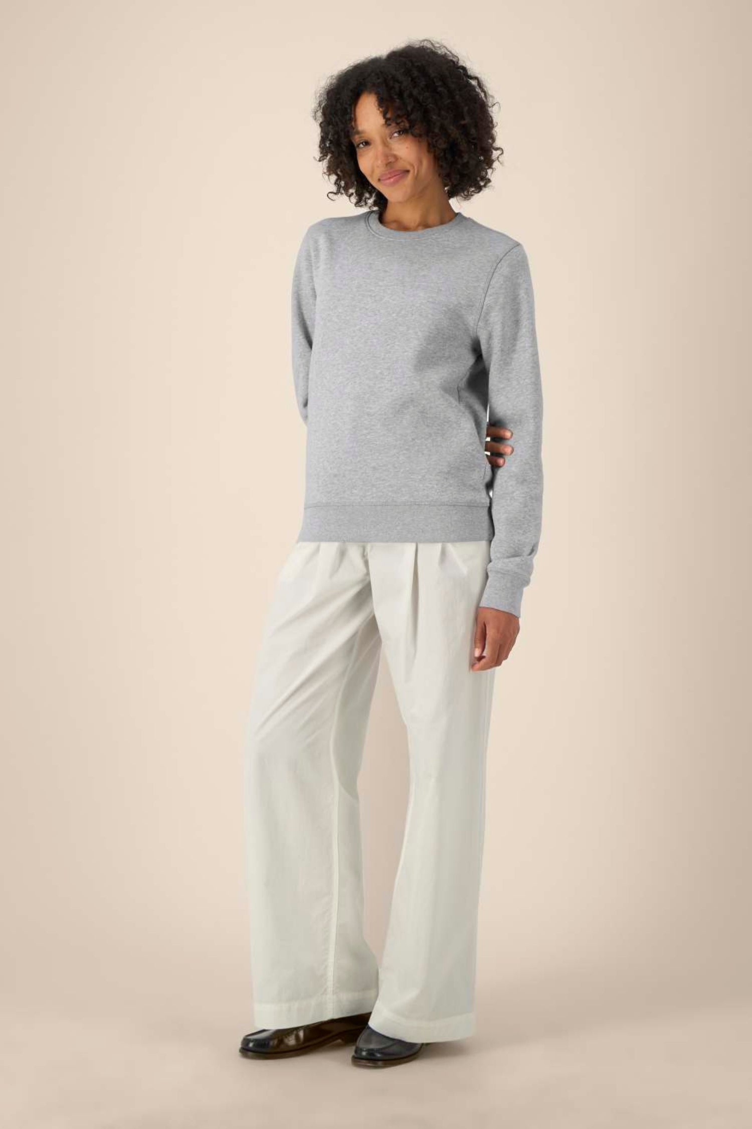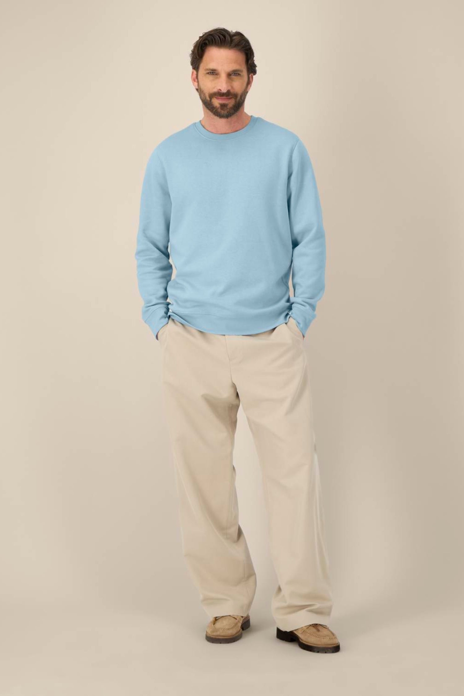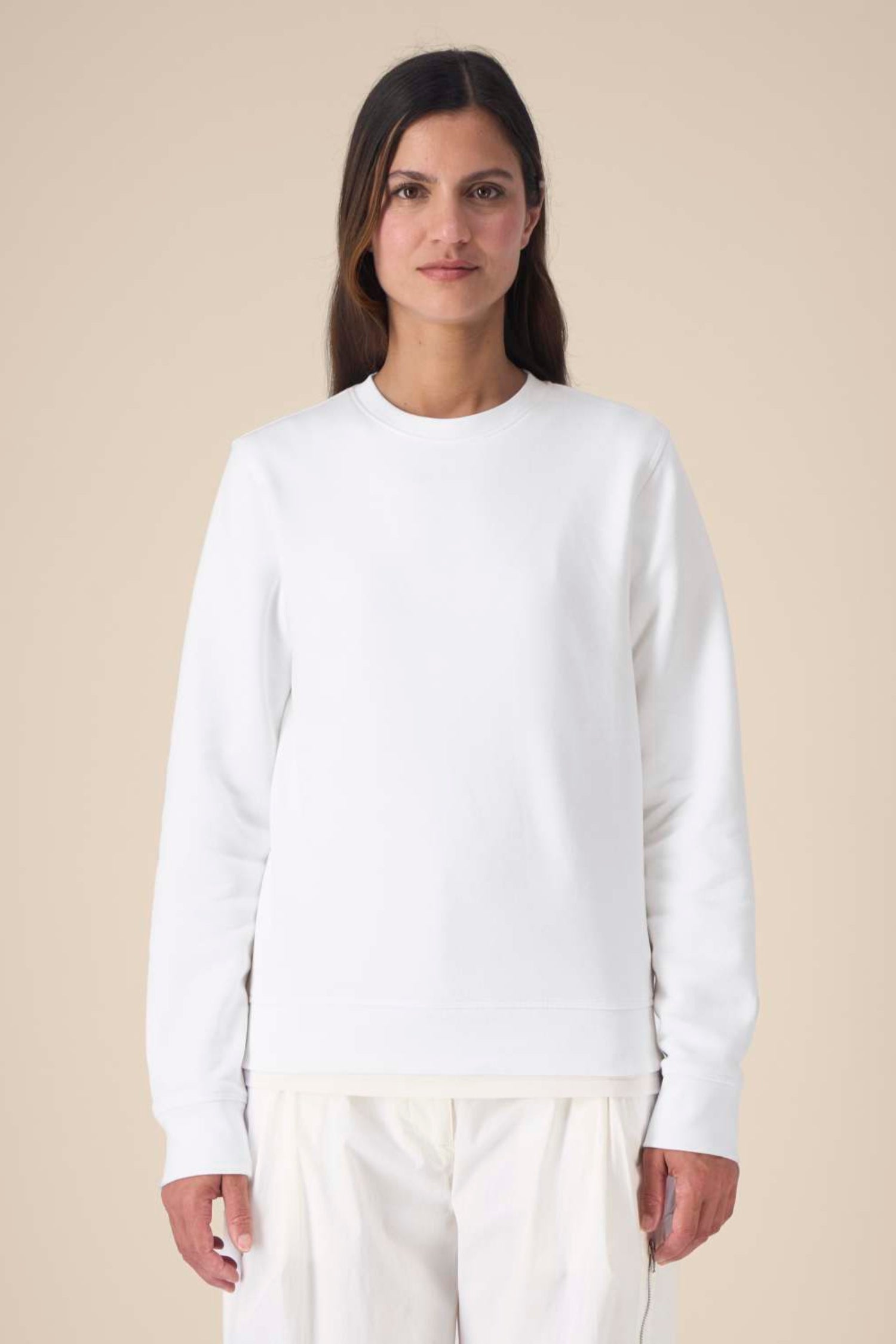 Son mélange de 85 % coton biologique et 15 % polyester recyclé en fait un sweat chaud, agréable et résistant, idéal pour les services en terrasse, les restaurants, les cuisines ouvertes ou les équipes travaillant en conditions fraîches.