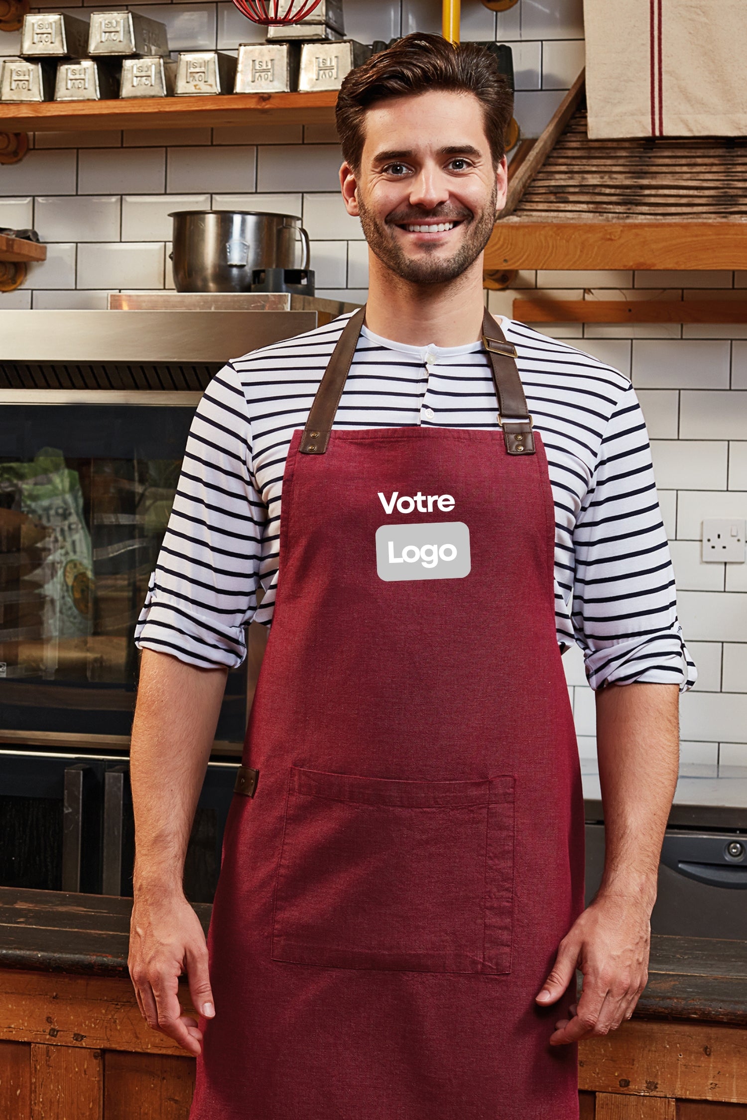 Tablier de cuisine personnalisé à bavette – Élégance, confort et identité professionnelle