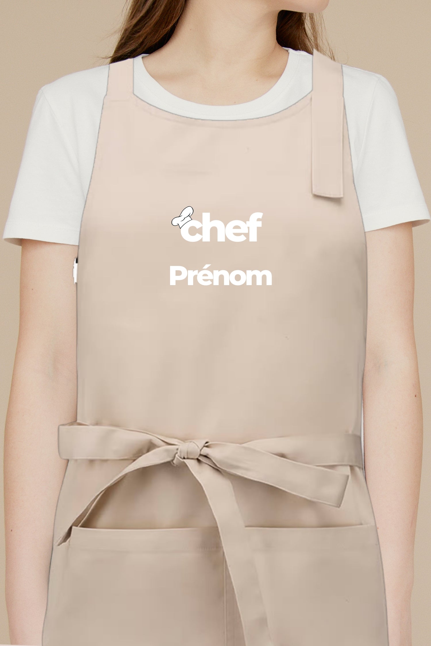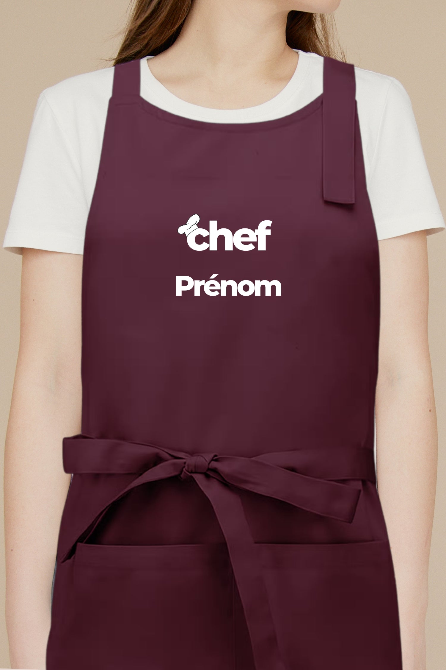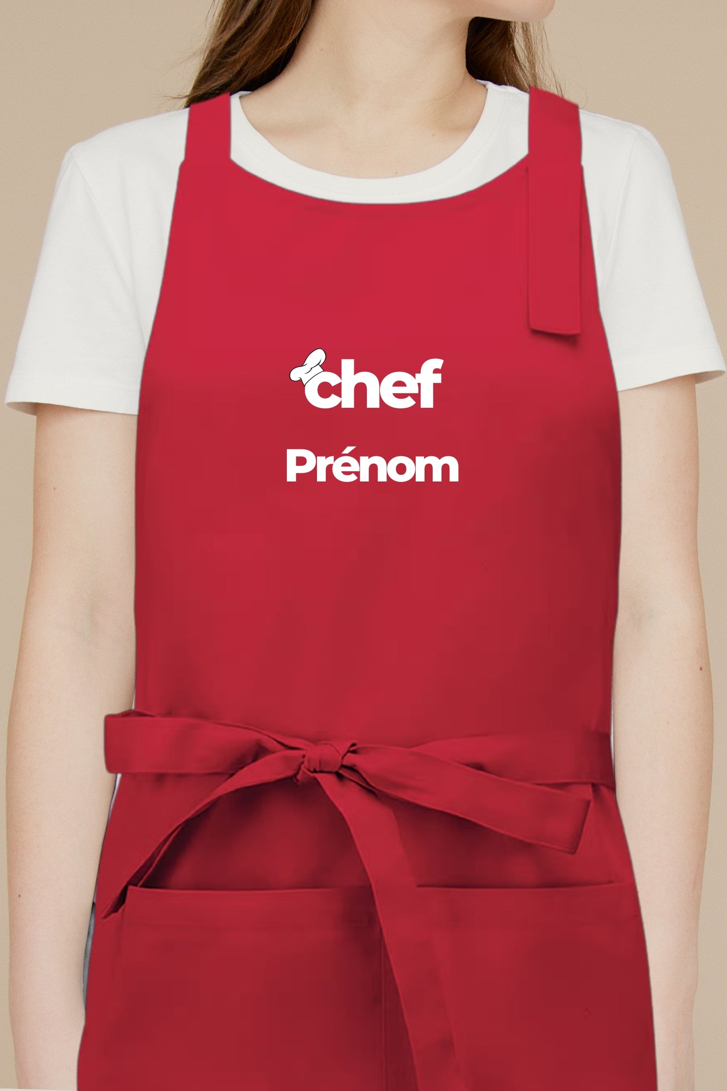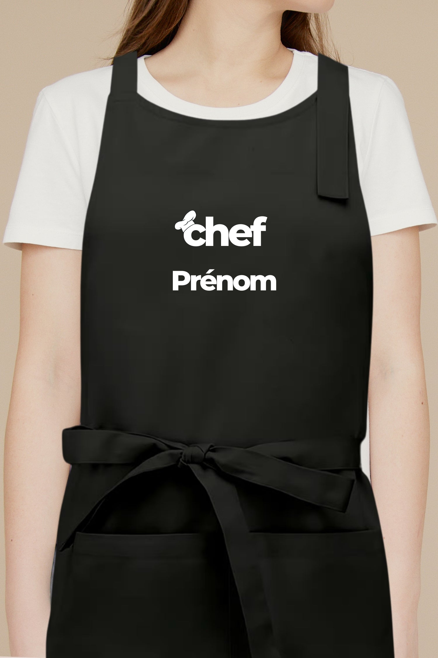 Le concept est simple : votre prénom devient votre signature en cuisine. Que ce soit pour le service, la pâtisserie, la cuisine ouverte ou un événement, le tablier “Chef Prénom” apporte une identité directe et professionnelle.